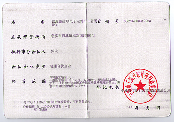 慈溪市峻联电子元件厂成立